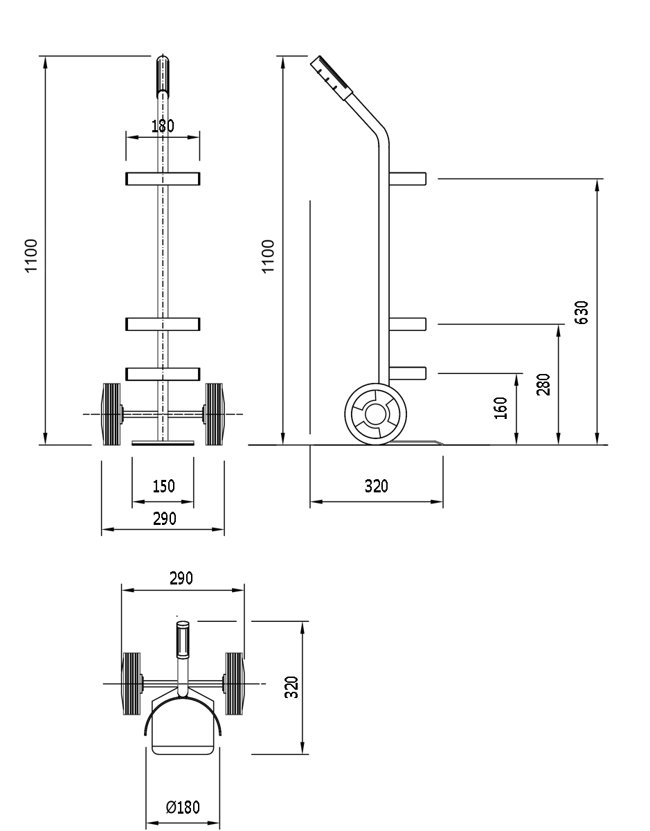 Ruota Gommata con anello il polverino grigio, nucleo in polipropilene di colore nero e mozzo su boccola liscia.