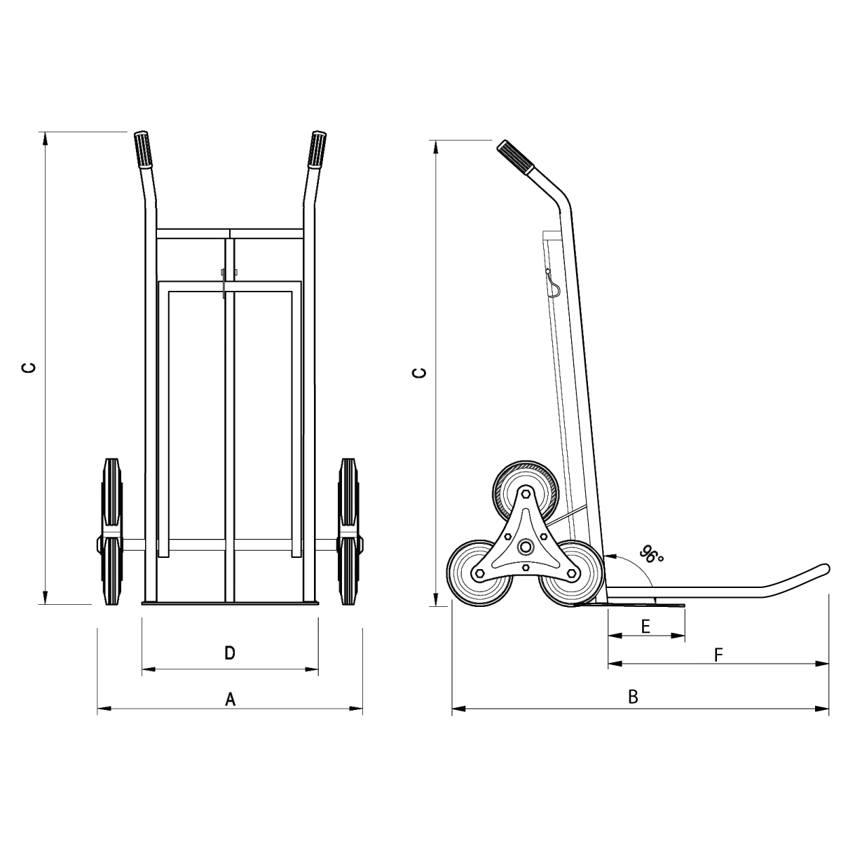 Carrello sviluppato per superare fastidiosi dislivelli (come scale) con doppia pedana apribile per avere un maggior spazio di carico. Ottima stabilità sia per uso domestico che per uso industriale, leggero e facile da usare.